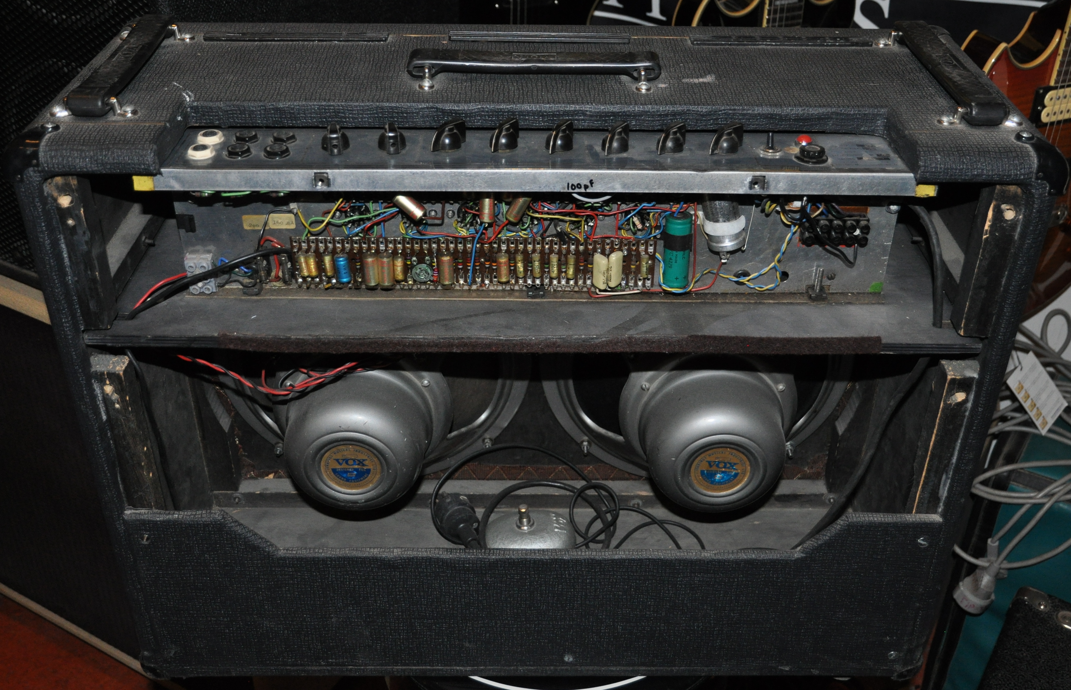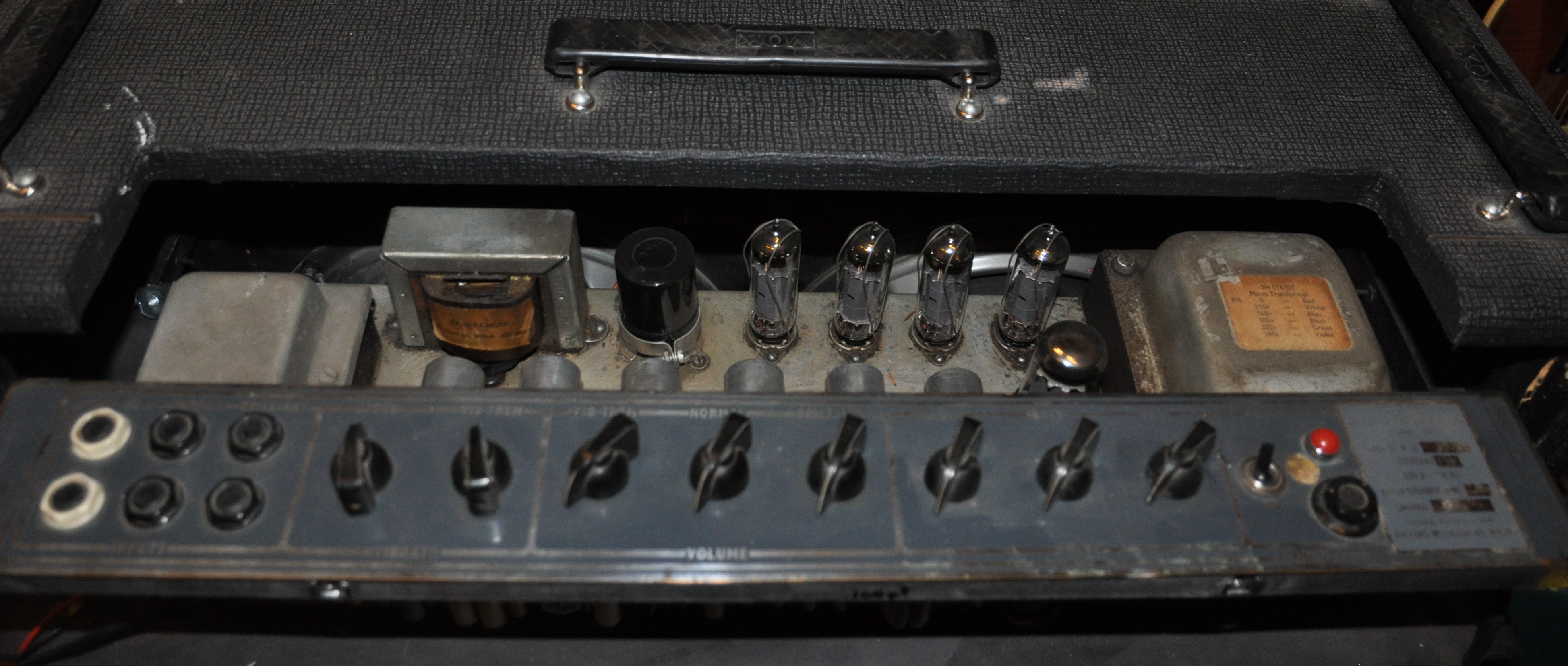 Brown cloth.Silver Alnico speakers.Grey panel A few caps replaced otherwise All original. Reissue handles.Newer Filtercap 32/32/500volt.Original transformers.Sounds fantastic.The real deal here, not a reissue....