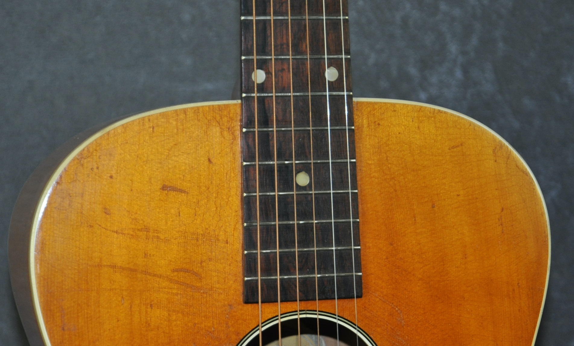 Unbound rosewood fingerboard with 18 frets & pearl dot inlay.